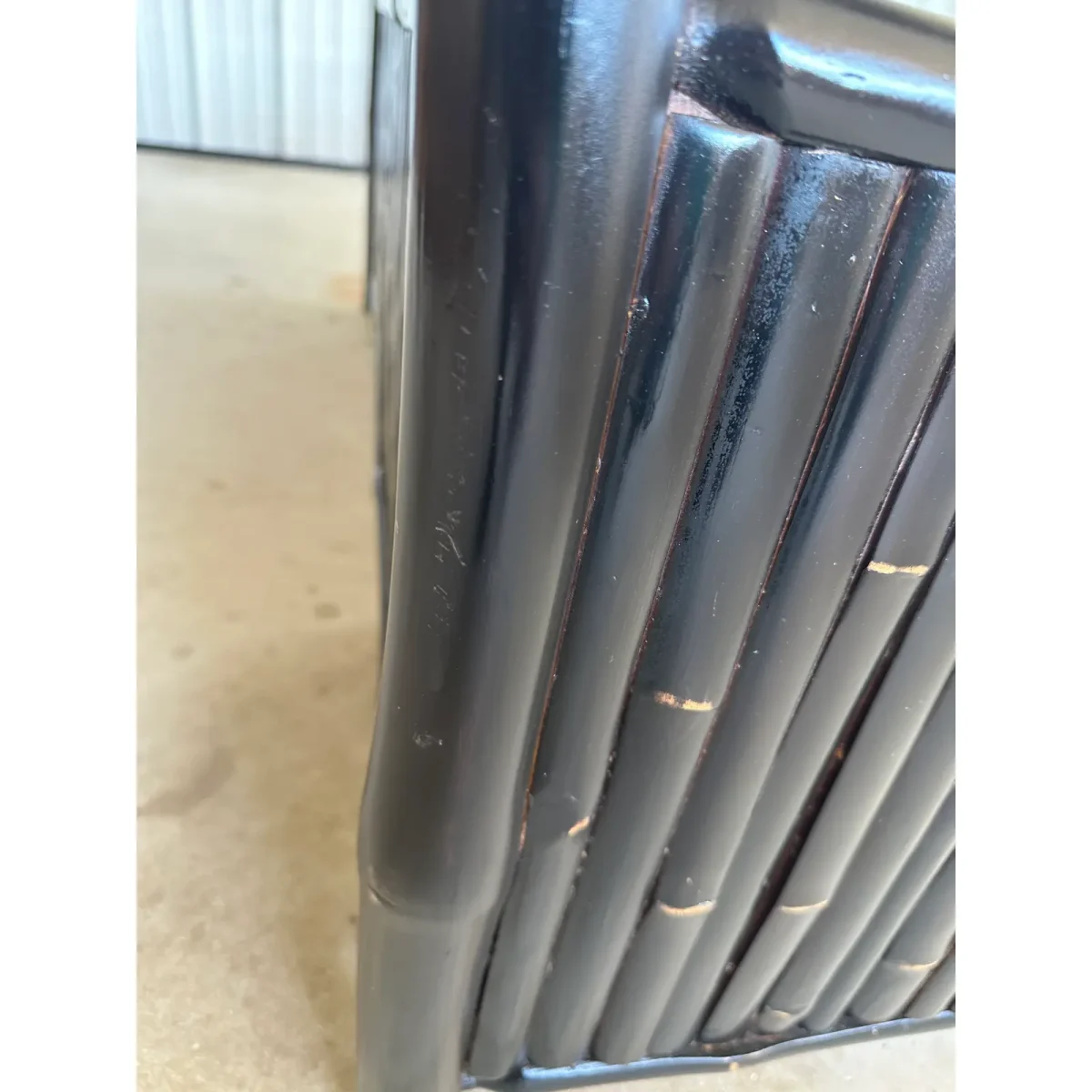 Some scuffs and scrapes to the finish most have been touched up but some still exist due to use and age. Solid heavy piece.
