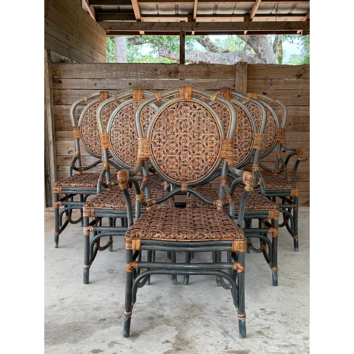 Ideal for covered patio dining, sunrooms, or coastal interiors looking for an aged, authentic touch. Sold as a set of six.