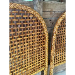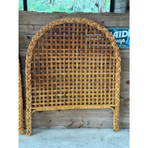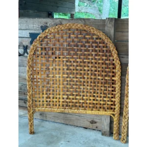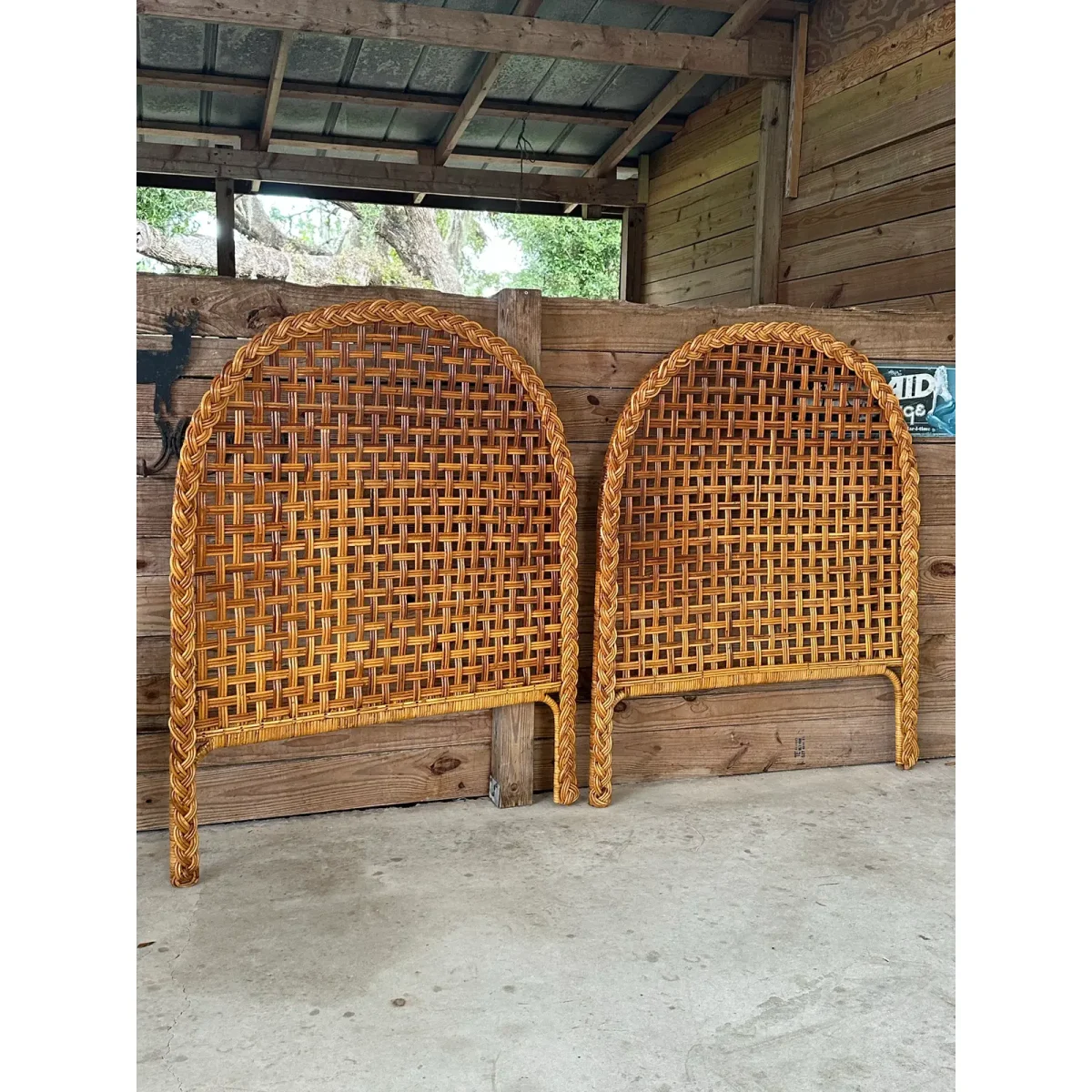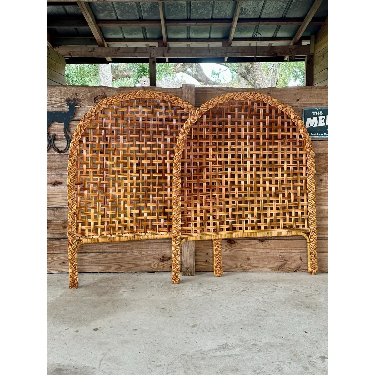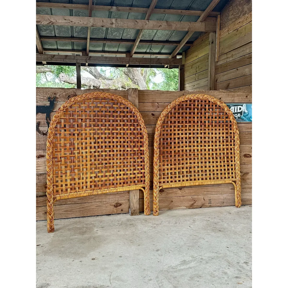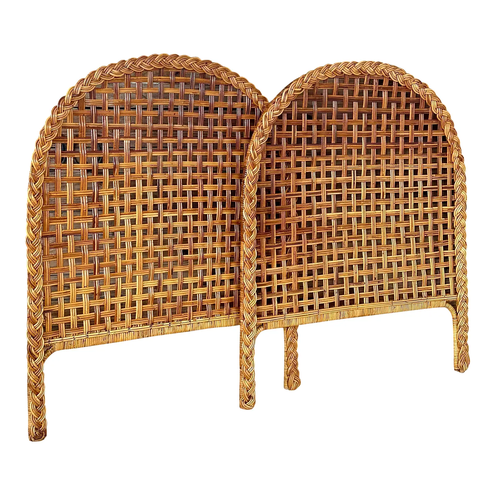 A stunning pair of vintage twin headboards crafted from large braid rattan, showcasing timeless elegance and natural Coastal charm.