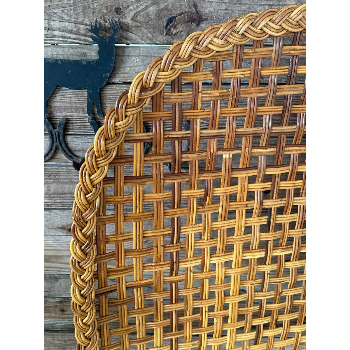 Some wear to the rattan consistent with age with some fading of original brown and tan color. Overall in great vintage condition.